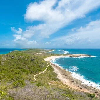 Pointe des Châteaux : A l’extrémité de la Grande Terre, ce lieu d’exception entre terre et mer est à couper le souffle. Suivez les escaliers jusqu’à la grande croix et observez la vue à 360 degrés : sur toute la Grande Terre, l’île de la Désirade et Petite Terre et Marie Galante ainsi que la Basse Terre les jours de beau temps. Contemplez les vagues se casser sur les falaises, c’est à cet endroit que l’océan Atlantique et la mer des Caraïbes s’entremêlent. Si vous vous réveillez avant le chant du coq, profitez-en pour aller voir le sublime lever du soleil.