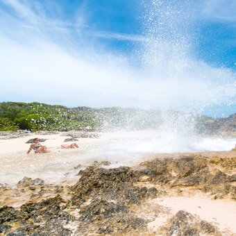 La Douche : Sur la route de la Pointe des Châteaux, la Douche est un endroit discret et surprenant. Venez profitez de la vue, et laissez-vous éclabousser par les impressionnantes vagues fraiches.